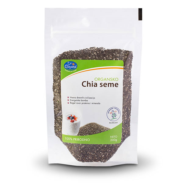 Organsko čia seme Beyond se prodaje u ukusno dizajniranim kesicama od 100g.