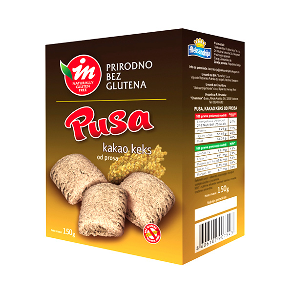 Bezglutenski keks od prosa i kakaoa je lako svarljiv, sadrži obilje minerala i biljnih vlakana, kao i flavonoida iz kakaoa koji povoljno utiču na opšte zdravlje. Posebno pogodan slatkiš za mališane u najranijem uzrastu. Namenjen je ishrani osoba sa intolerancijom na gluten.
